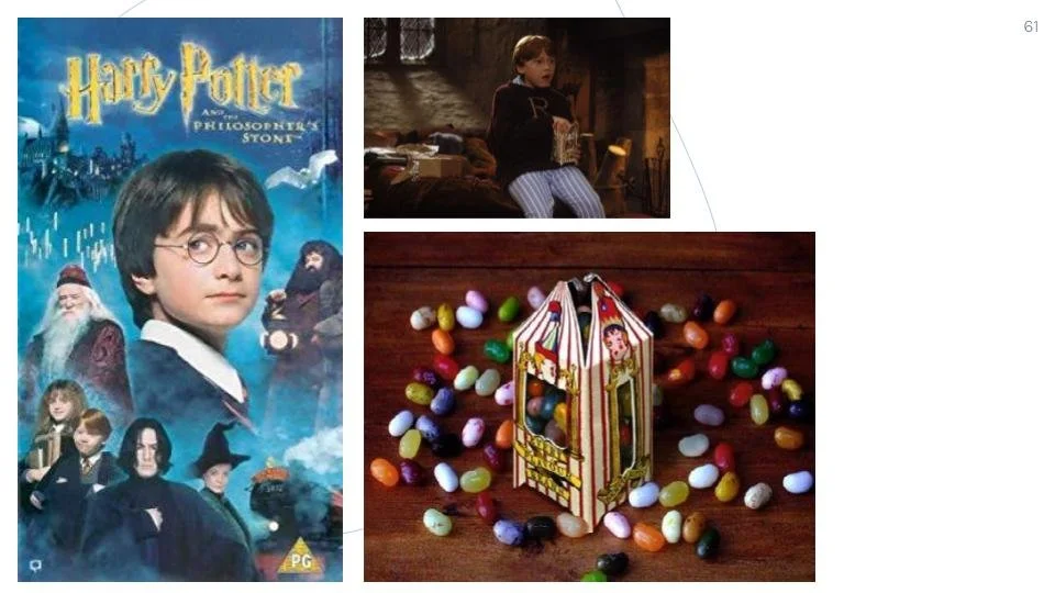 Children love two things: eating things and laughing when something silly happens to their friends. Using Harry Potter-themed jelly beans, we practiced using the “It tastes” sentence structure. Only a taste test could reveal whether an orange jelly bean was peach or vomit flavored!